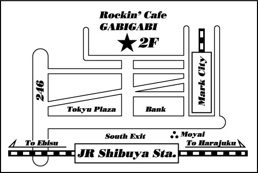 --map JR渋谷駅南口(モアイ像側)より徒歩3分、京王井の頭線渋谷駅出口より徒歩1分 ![]() GABIGABI 東京都渋谷区道玄坂1-13-3MST道玄坂2F MST Dougenzaka bldg.2F 1-13-3Dougenzaka,Shibuya-ku,Tokyo,105-0001 Rockin' Cafe"Shibuya GABIGABI" TEL&FAX;03-3463-5538 |